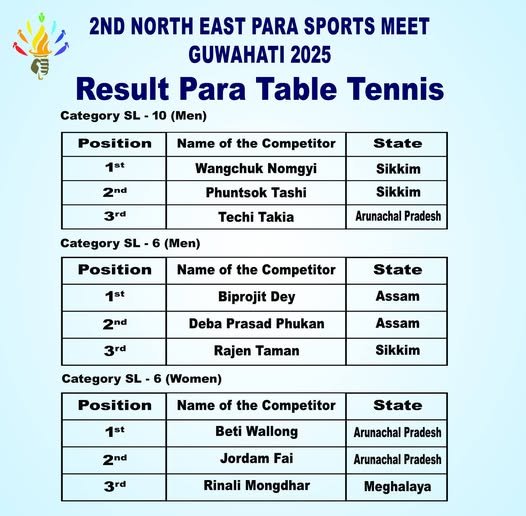 The results highlight exceptional skill across categories, showcasing the competitive depth and talent of para athletes from the region. Each match reflected resilience, precision, and true sporting spirit, contributing to a memorable edition of the meet.
